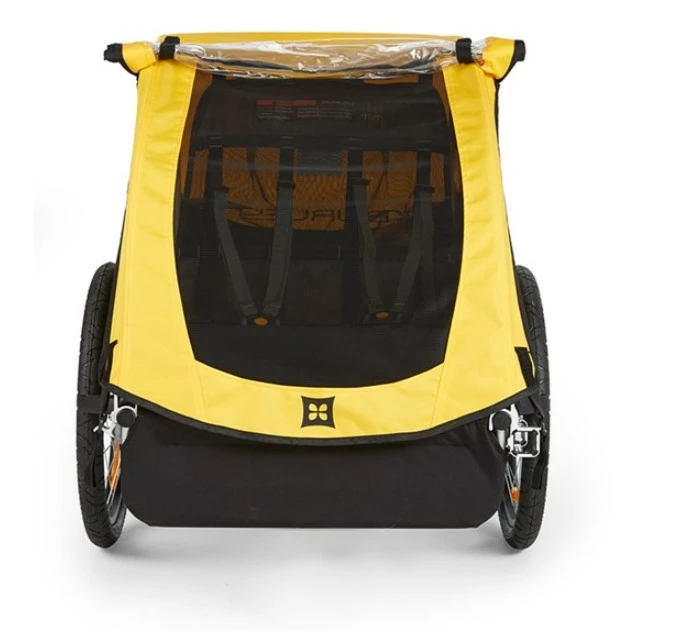 Smart og praktisk cykeltrailer til plads til 2 børn. Anhængeren har mulighed for at trække regncoveret op, når vejret er til det. Der er mesh-paneler for øget ventilation, kraftige dæk og en solid konstruktion. Med de fine 3-punkt seler, er børn godt og behageligt spændt fast.