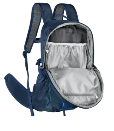 Rygsækken er lavet så man kan indsætte op til 3 L reservoir i det store rum. Den har et stort rum med lynlås, samt to mindre lommer foran.
